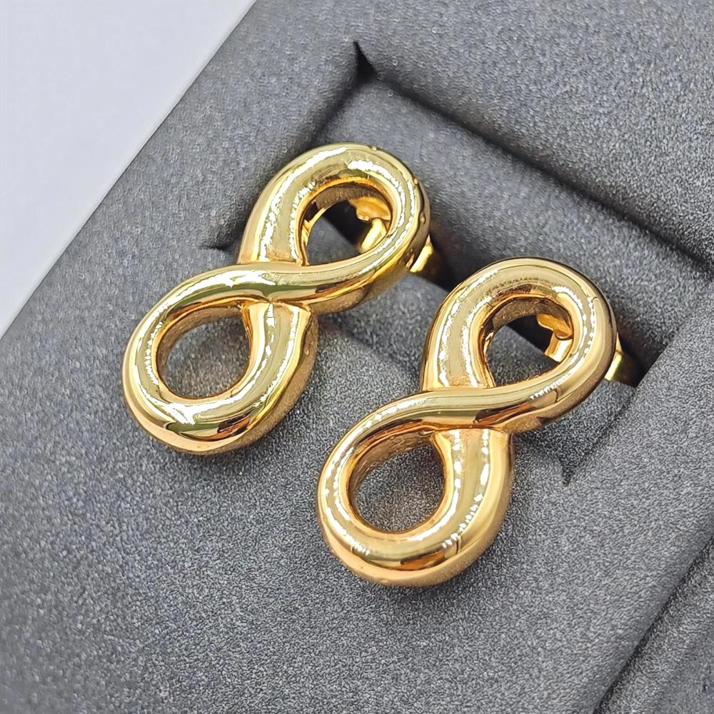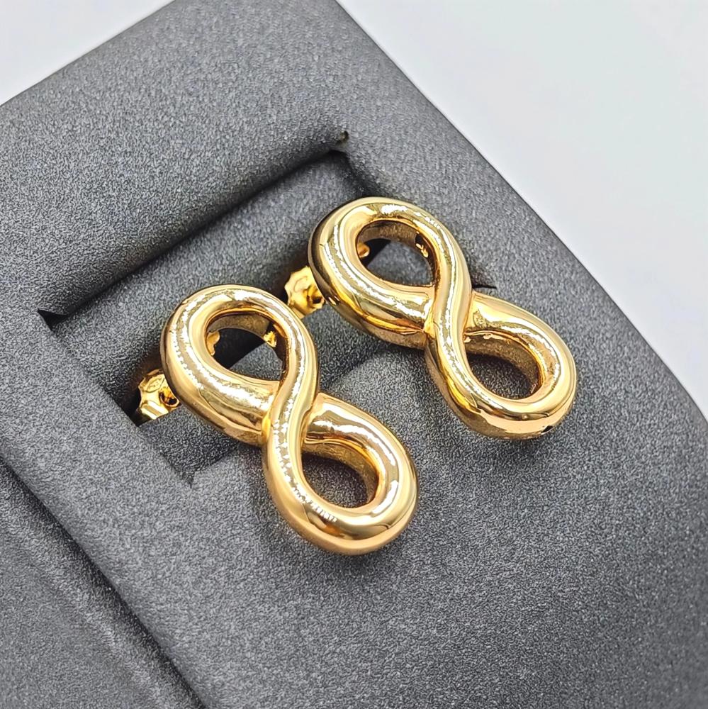 حلق ذهبي عيار 18 بتصميم إنفنتي أنيق يرمز إلى الأبدية.