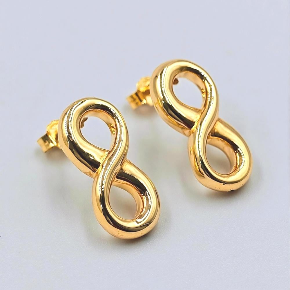• 18K gold earring with a sleek infinity design symbolizing eternity.