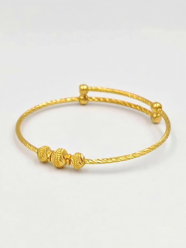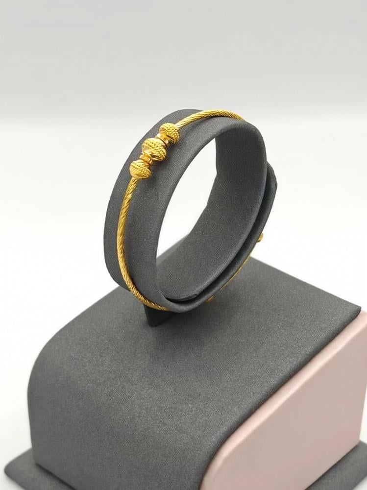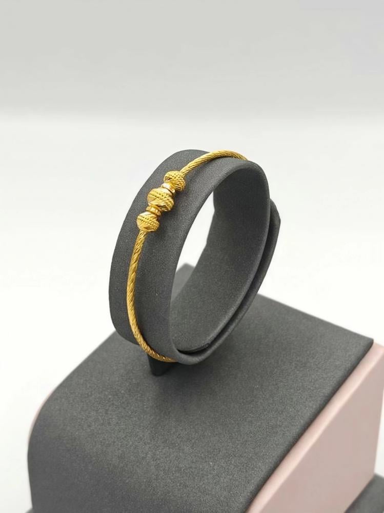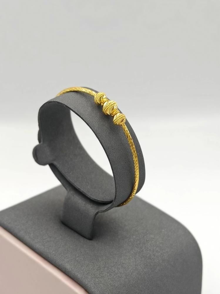 A 22K gold bangle, made from high-purity gold (91.6%), is a timeless piece of jewelry that exudes elegance. Its smooth, polished surface catches the light beautifully, making it a perfect accessory for both everyday wear and special occasions. Available in various designs, from simple and classic to ornate and embellished, a 22K gold bangle adds a touch of luxury to any outfit. Its durability ensures it can be cherished for years to come, making it a great addition to any jewelry collection.