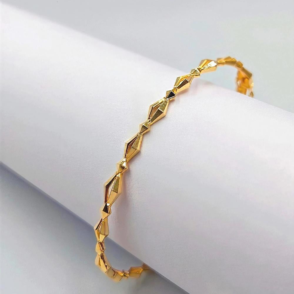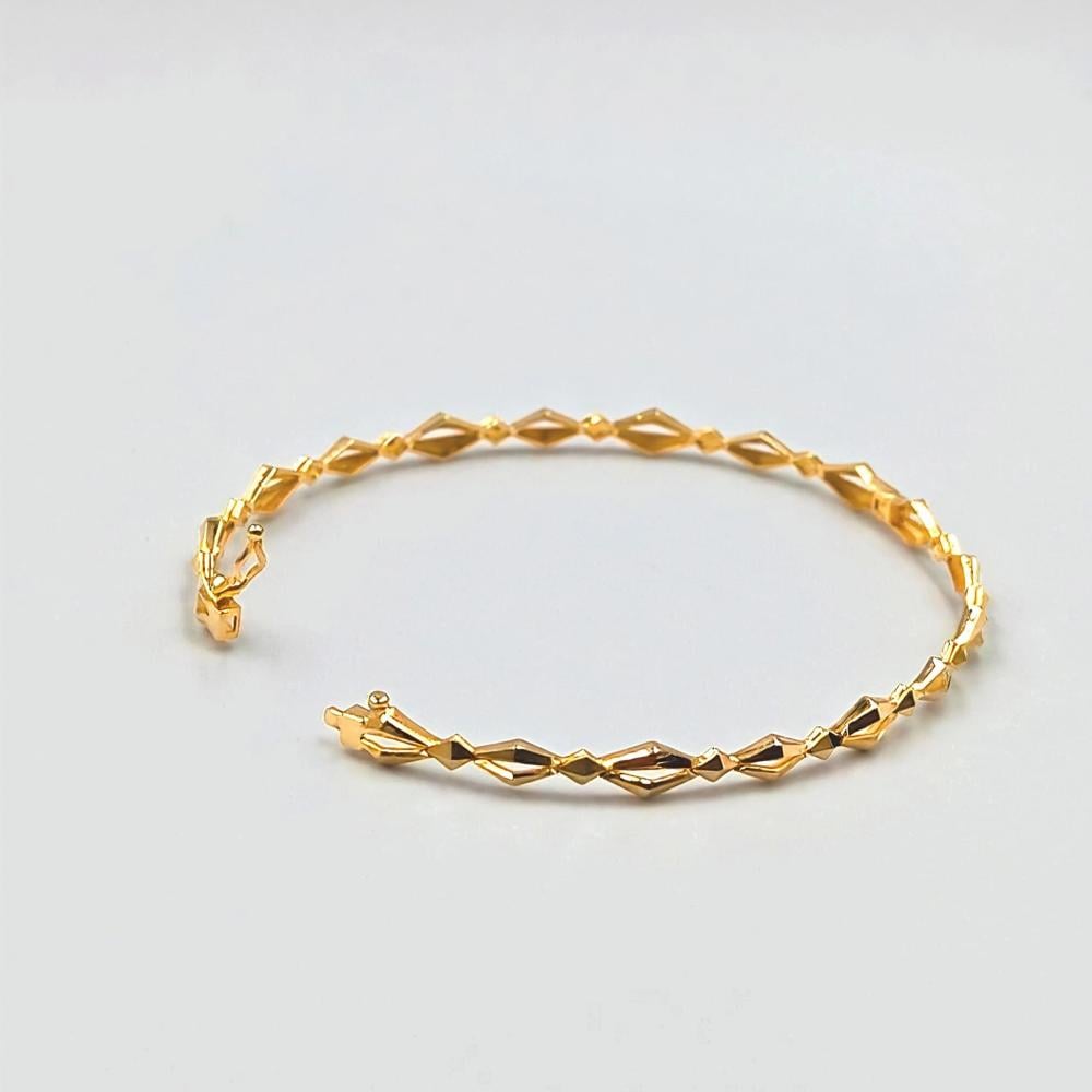 Type: Gold BraceletKarat: 18KDesign: Elegant and modern for all stylesColor: Brilliant goldOccasion: Perfect for gifts and special eventsClasp: Secure and comfortableSymbol of elegance: A refined Saudi touch