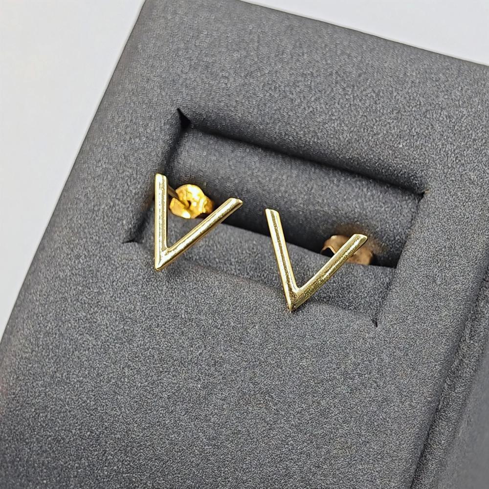 • حلق ذهب عيار 18 بتصميم V أنيق